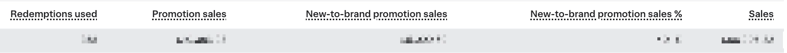 - New To Brand Promotion (NTB) Sales: Sales from New-to-Brand shoppers who redeemed